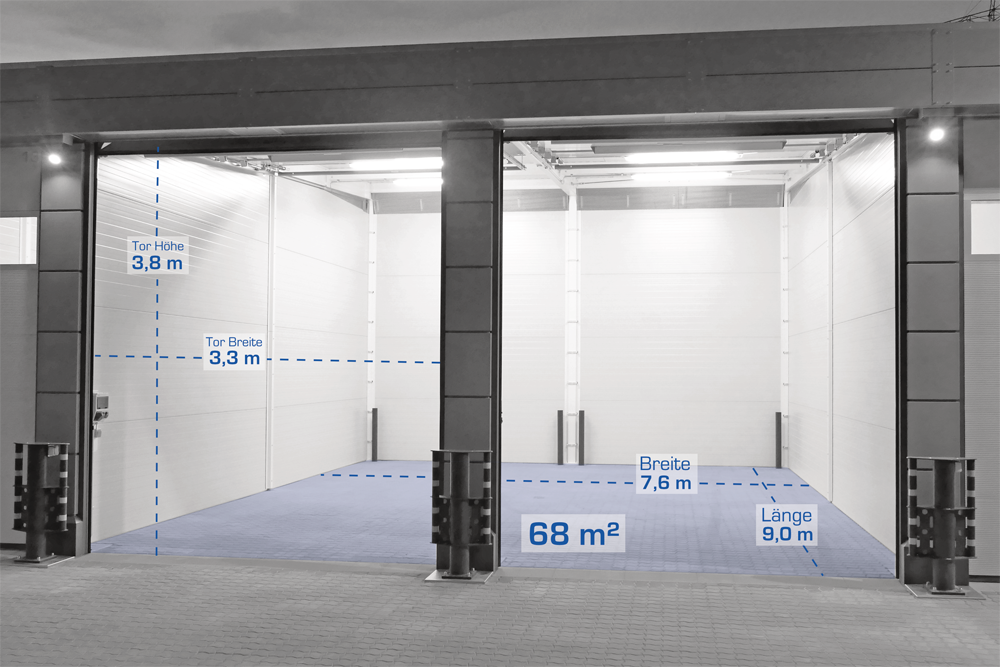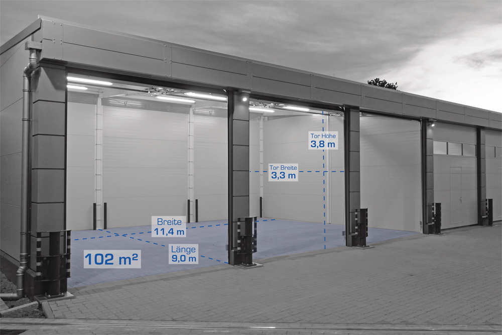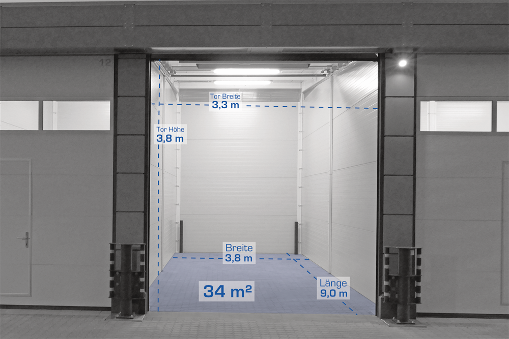• große Toröffnung: 3,3 m x 3,8 m (Breite x Höhe)